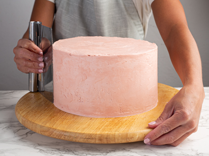 4. Add the final layer of buttercream over the crumb coat, making sure not to scrape against it while smoothing out the frosting over the top and sides.