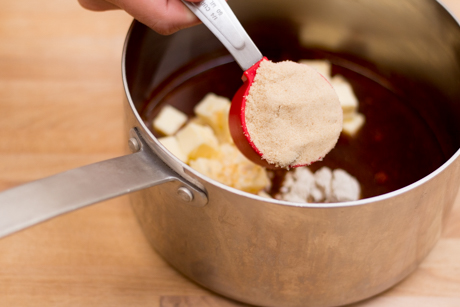 4. To make the glaze combine all the ingredients in a small saucepan and cook together over medium heat, simmering until the sugar has dissolved. Approximately 5 minutes.