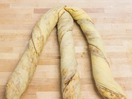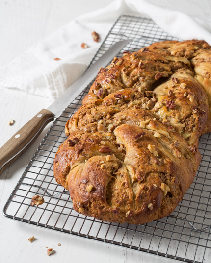 Braided Orange-Nut Loaf Braided Orange-Nut Loaf If you can make bread, you can braid bread! Don't be intimidated by the look of this amazing loaf - it’s so easy to put together! Impress your family and friends with a super-satisfying blend of oranges, walnuts, and pecans. This recipe will really show off your kitchen chops! Categories: Breads, Muffins & Scones Breakfast Granulated Sugar Golden Yellow Sugar Yields 1 large loaf Prep Time 2 hours 30 minutes Cook Time 25 to 30 minutes Ingredients For the Loaf ⅓ cup (80 ml) milk, warmed to 110-115ºF (43-45ºC) 1 tbsp (15 ml) honey 2 tsp (6 g) active dry yeast 1¾ cups (219 g) bread flour 1⅓ cups (166 g) all-purpose flour ½ tsp (3 g) salt ½ cup (113 g) butter, room temperature ⅓ cup (67 g) Redpath® Granulated Sugar 1 large egg, room temperature 2 large egg yolks, room temperature ¼ cup (60 ml) orange juice, room temperature 2 tbsp (12 g) orange zest, finely grated 2 tsp (10 ml) pure vanilla extract 1 tsp (5 ml) pure almond extract For the Orange Walnut-Pecan Filling ½ cup (56 g) raw walnut pieces ½ cup (54 g) raw pecan pieces ½ cup (109 g) Redpath® Golden Yellow Sugar, firmly packed 1 tsp (3 g) ground cinnamon ¼ tsp (1 g) ground cloves ¼ tsp (2 g) salt ⅓ cup (76 g) butter, melted and slightly cooled 3 tbsp (45 ml) orange juice, freshly squeezed 2 tbsp (12 g) orange zest, finely grated 1 tbsp (15 ml) dark rum 1 tsp (5 ml) pure vanilla extract 1 large egg 1 tbsp (15 ml) water For the Garnish 1 tbsp (7 g) raw walnut pieces, roughly chopped 1 tbsp (7 g) raw pecan pieces, roughly chopped Instructions How to Prepare In a small bowl or measuring cup, combine the warmed milk with honey, stirring to combine. Stir in the active dry yeast. Allow to sit for a few minutes, until mixture becomes foamy. In a medium bowl, whisk together the bread flour, all purpose flour and salt. Set aside until needed. Meanwhile, in a stand mixer with the paddle attachment, cream together butter and the Redpath® Granulated Sugar until well-combined; about 2 minutes. On medium speed, add the egg and yolks, one at a time, beating until well-incorporated before adding another. While the mixer is running on medium-low speed, slowly pour in the orange juice. Add in the orange zest as well as the vanilla and almond extracts. The mixture may separate, but it will come together once the flour is introduced. Blend in the yeast mixture. On low speed, add the flour about 1 cup (120 grams) at a time. Once all the flour has been added, switch to the dough hook attachment. Knead on medium-low speed until dough starts to come together; about 2 minutes. Increase speed to medium and knead until dough pulls away and cleans the mixing bowl. The dough should be soft and smooth. Remove dough from the bowl and knead on a lightly floured surface. Transfer the ball of dough into a lightly greased or oiled bowl, turning over the dough to grease the top. Cover bowl with plastic wrap and set in a warm, draft-free location, until the dough has doubled in size. While the dough is rising, prepare the Walnut-Pecan Orange Filling. How to prepare the Filling Preheat oven to 300℉ (150℃). Line a baking sheet with parchment paper, and spread the walnut and pecan pieces out into a single layer. Place nuts into the preheated oven for 10 to 15 minutes, or until nuts are fragrant and lightly toasted. Remove from oven and allow to cool. Increase oven temperature to 350℉ (175℃). In the bowl of a food processor, fitted with the metal blade, place cooled nuts, Redpath® Golden Yellow Sugar, cinnamon, cloves and salt. Pulse several times until nuts are finely ground and well-combined with the sugar and spices. Add in the melted butter, orange juice, orange zest, dark rum and vanilla extract. Process until thoroughly combined. Set aside. For the Egg Wash In a small bowl, whisk together the egg and water. How to assemble the Braided Orange-Nut Loaf On a lightly floured work surface, roll dough out into a 24 x 10 inch (60 x 25 centimetre) rectangle, with the longer edge parallel to the edge of the work surface. With a rubber spatula, carefully and evenly spread the filling onto the dough. Leave about 1 inch (2.5 centimetres) of empty space on the longer edges. Lightly brush the edge furthest away from the edge of the work surface with water. Carefully roll the dough, towards the dampened edge, into a log. Press down slightly to seal the dampened edge of the dough. Gently roll the log, back and forth, until even in size - the rope will be approximately 2 inches (5 centimetres) in diameter and 24 inches (60 centimetres) in length. Place the rope, covered in plastic wrap, into the fridge to rest and chill; about 10 minutes. This will make it easier to slice. With a sharp chef’s knife, divide the dough evenly into three equal pieces - approximately 8 inches (20 centimetres). Pinch together the open ends. Cover and place into the fridge to rest; about 10 minutes. With a rolling pin, making sure the seam side is down, roll each log into a long narrow oval roughly 14 inches (35 centimetres) long and about 1 1/2 inches (4 centimetres) in width. Twist each flattened log into a rope. Pinch the 3 ends together and braid the three twisted ropes together. Tuck the ends underneath. Place onto a parchment-lined baking sheet and cover loosely with plastic wrap. Set in a warm, draft-free location to rise, until doubled in size; about an hour. Lightly brush loaf with the egg wash, and sprinkle the walnut and pecan pieces over the loaf. Place into the preheated oven. Bake for 25 to 30 minutes or until the internal temperature reads 190℉ (85℃) when a thermometer is inserted into the centre of the loaf. Take out of the oven and carefully transfer to a wire cooling rack to cool completely. CHEF'S TIP *Substitute almonds, hazelnuts, or any desired nut for the walnuts or pecans. *The dark rum can be replaced with rum extract. However, additional orange juice, brandy or whiskey can work, as well. More Breads, 