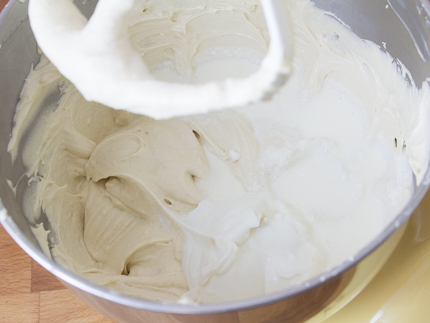 With the mixer running on medium-low speed, pour in the dissolved gelatin and beat for 2 minutes.