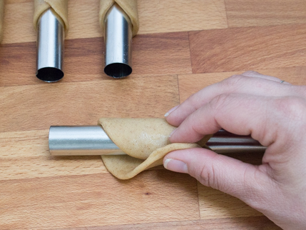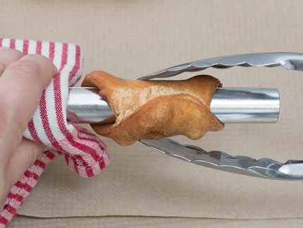 Canadian Coffee and Cream Cannoli Canadian Coffee and Cream Cannoli Are you ready for a sweet history lesson? Cannoli originated in Sicily, where the word cannolo, or cannolu, means “little tube”. Today, these little tubes full of deliciousness are a popular treat all over Canada. Categories: Pastries Snacks Afternoon Tea Desserts Yields 8 to 20 cannoli Prep Time 1 hour 15 minutes (+1 hour of resting time) Cook Time 15 minutes Ingredients For the cannoli 1 ¾ cups (219 g) all purpose flour 2 tbsp (25 g) Redpath® Granulated Sugar 1 tsp (4 g) cinnamon ½ tsp (3 g) salt 3 tbsp (45 ml) olive oil 1 large egg ⅓ cup (80 ml) Marsala or dry white wine 1 egg white 1 tsp (15 ml) water vegetable oil, for deep frying For the filling 3 ½ tsp (4 g) instant espresso 1 tbsp (15 ml) boiling water 1 ⅓ cups (293 g) ricotta cheese ½ cup + 1 tbsp (60 g + 8 g) Redpath® Icing Sugar 1 tsp (5 ml) vanilla extract ½ cup (120 ml) whipping cream Espresso powder, to garnish cannoli Tubes pastry Brush 3 in (7.5 cm) diameter cutter large pastry bag ½ inch (1 cm) plain or star pastry tip cannoli Tubes pastry Brush 3 in (7.5 cm) diameter cutter large pastry bag ½ inch (1 cm) plain or star pastry tip Instructions For the cannoli: Place the flour, Redpath® Granulated Sugar, cinnamon and salt in the bowl of a stand mixer fitted with the paddle attachment. Mix on low speed to combine. With the mixer running, add the oil; mix 1 minute. In a small bowl, whisk together the egg and wine. Pour into the flour mixture; mix 1 minute. Switch to the dough hook and mix on medium low until smooth and elastic, about 5 minutes. Wrap dough in plastic wrap and let rest in the refrigerator for 1 hour. In a small bowl beat together the egg white and water. On a lightly floured surface, roll out the dough to a thickness of 1/8th inch (3 millimeters). Cut out circles using a 3 inch (7.5 centimeter) cutter. Re-roll scraps and cut out circles again, until all the dough is used. Wrap cannoli tubes with a circle of dough and brush with egg white on one edge. Slightly stretching the dough, overlap the edges and press to seal. Repeat with as many circles as there are tubes. Fry in oil until golden on all sides, about 2 minutes. Transfer to lined baking sheet and allow to cool for 5 minutes. Slide fried cannoli off the mould. Rinse moulds under cold water to cool and dry thoroughly. Repeat shaping and frying remaining dough. Allow shells to cool completely before filling. For the filling: Place a medium bowl in the freezer to chill for 10 minutes. Fit a large piping bag with ½ inch (1 cm) plain or star pastry tip. Meanwhile, in a small bowl, dissolve the instant espresso in the water. Place the ricotta, ½ cup (60 g) Redpath® Icing Sugar, vanilla and dissolved espresso in the bowl of a food processor or blender; blend until smooth. Transfer to a large bowl. Place the whipping cream in the chilled bowl and using an electric mixer on medium speed, whip to soft peaks. Add the remaining 1 tablespoon (8 grams) of Redpath® Icing Sugar and beat to firm peaks. Gently fold the whipped cream into the ricotta mixture a couple of times to create a marbled appearance. Chill for 10 minutes. Place coffee cream mixture into the piping bag. Pipe cream from the centre outwards on both ends of each cannoli shell. Dust with espresso powder and serve immediately, CHEF'S TIPS Cannoli tubes can be purchased at most baking and kitchen supply stores. If you do not have cannoli tubes, fry dough circles flat and pipe filling in a swirl on top. More Pastries Recipes Ricotta Cheesecake Turnovers Old-Fashioned Apple Dumplings with Brown Sugar Apple Cider Syrup Mini Strawberry Date Galette Crescents Apple Spring Rolls Red Wine Poached Pears in Puff Pastry Gingerbread Palmiers Orange Blossom Baklava Cups Blueberry Pinwheels (Pets de soeurs) Knafeh (Middle Eastern Sweet Cheese Pastry) Classic Mille-Feuille Cake