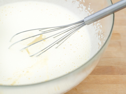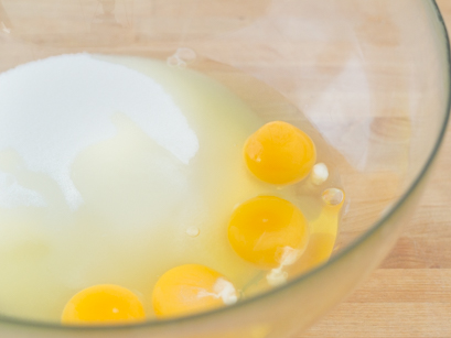 3. Meanwhile, in a large bowl, using a hand blender or stand mixer, combine eggs and Redpath® Organic Granulated Sugar. Whip until mixture becomes fluffy and light coloured, usually about 5 minutes.