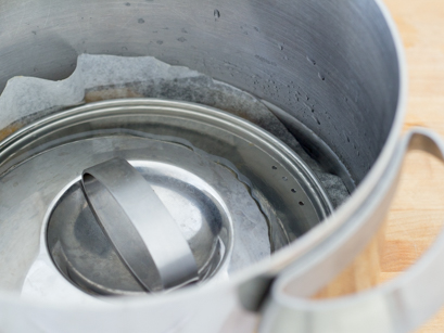 4. Visually align the point of this triangle into the middle of the pot and mark on the outside where the pot ends. Cut along this line and you will now have a large circle, which will fit inside the pot.