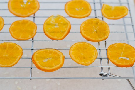 8. Once cooled, carefully remove the citrus slices and put them onto a cooling rack. Allow them to dry out at room temperature for at least 8 hours.