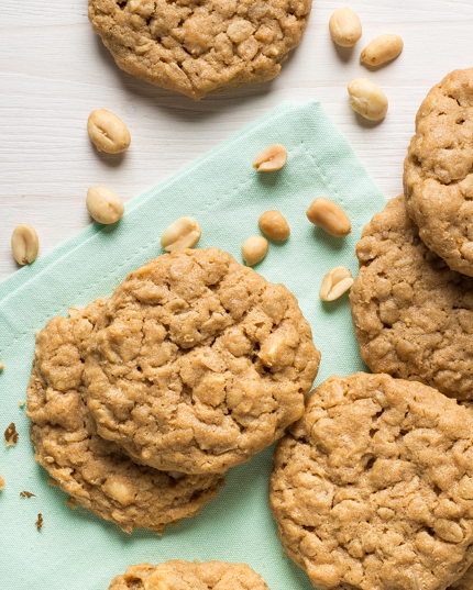 Easy One-Bowl Oatmeal Peanut Butter Cookies Easy One-Bowl Oatmeal Peanut Butter Cookies No matter where we go, this recipe for Easy One-Bowl Oatmeal Peanut Butter Cookies always reminds us of home. The warm, soft and inviting fragrance of these cookies is the definition of comfort. What do we do when we have one bowl and a handful of oats in the Redpath Test Kitchen? Why, we whip up a batch of these heartwarming favourites. Categories: Cookies, Brownies & Bars Desserts Snacks Dark Brown Sugar Granulated Sugar Yields 4 dozen cookies Prep Time 20 minutes Cook Time 10 to 12 minutes Ingredients 1 ½ cup (388 g) smooth peanut butter 1 cup (227 g) unsalted butter, room temperature ¾ cup (163 g) Redpath® Dark Brown Sugar, firmly packed ⅓ cup (67 g) Redpath® Granulated Sugar 2 large eggs, room temperature 1 tbsp (15 ml) pure vanilla extract ½ tsp (3 g) salt ½ tsp (2 g) ground cinnamon 2 ⅓ cups (233 g) large flake oats 1 cup (125 g) all-purpose flour ¼ tsp (6 g) baking soda ½ tsp (2 g) baking powder ½ cup (85 g) peanut butter chips 1 cup (146 g) roasted peanuts, roughly chopped Instructions Preheat oven to 350°F (177°C). Line two large baking sheets with parchment paper. In the bowl of a stand mixer, using the paddle attachment, cream the peanut butter with the butter until thoroughly combined and smooth. Add the Redpath® Dark Brown Sugar and the Redpath® Granulated Sugar to the creamed peanut butter mixture. Cream on medium speed until fluffy and lightened in colour; about 3 minutes. Add the eggs, one at a time, mixing well after each addition and before adding the next. Add the pure vanilla extract, salt and cinnamon. Blend until incorporated. Add in the oats, mixing on low speed until just-combined. Sift in the flour, baking soda and baking powder. Mix until combined. Add in the roasted peanuts and peanut butter chips. Mix on low speed until distributed evenly throughout the dough. Cover and chill dough in the fridge; about 15 minutes. With a small ice cream scoop, scoop even-sized rounds onto the parchment-lined baking sheets. With the palm of your hand, gently flatten the rounds to about ⅓ inch (8.5 millimetre) thickness. Place baking sheets into the preheated oven and bake for 10 to 12 minutes, or until the edges are golden brown. Remove from the oven. Allow cookies to cool completely on the baking sheet before transferring to a platter or airtight container. CHEF'S TIPS *Roasted peanuts can be replaced with raisins, almonds, pecans, dried cranberries or any desired fruit or nut. *Feel like these cookies could use a bit of chocolate? Feel free to use dark, milk or white chocolate chips in place of the peanut butter chips. More Cookies, Brownies and Bars Recipes Mini Chocolate Whoopie Pies (3 Ways) Chocolate-Dipped Cookie Dough Bites Pumpkin Cheesecake Swirl Brownies Cranberry Pistachio Nougat Confetti-Filled Piñata Sugar Cookies Classic Lemon Bars Golden Pavlova with Seasonal Berries Classic Chocolate Chip Cookies Apple Date Crumble Bars Floral Sugar Cookie Conversation Hearts
