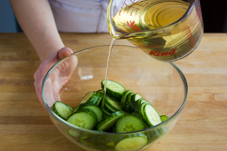 Pour the vinegar mixture over all of the vegetables, making sure to distribute it as evenly as you can. Don't worry if the vegetables are not completely covered.