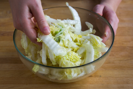 Mix the wasabi paste in with the napa cabbage to give them an extra bite, if you so desire. Use the smaller amount if you aren’t a fan of spice.
