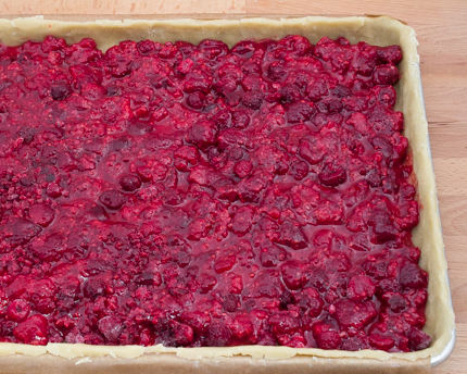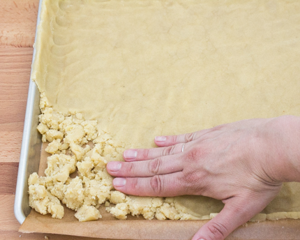 Gluten-Free Raspberry Slab Pie Gluten-Free Raspberry Slab Pie Have a special event coming up, but need a break from cake? This party-size Raspberry Slab Pie is not only big and delicious, it’s gluten-free, too, so all your guests can have a piece without having to worry. Customize the lid with cutouts and letters for the perfect celebration dessert! Categories: Pies & Tarts Desserts Gluten-free Serves 15 to 18 servings Prep Time 1 hour Cook Time 40 to 45 minutes and 45 minutes of chilling time Ingredients For the crust 3 ½ cups (315 g) almond flour 2 ¾ cups (418 g) rice flour 1 ½ cups (189 g) cornstarch 6 tbsp (75 g) Redpath® Granulated Sugar 2 tsp (12 g) salt 1 tsp (4 g) xanthan gum 1 ½ cups (341 g) unsalted butter, chilled and cut into ½-inch (2.5 cm) pieces 3 large egg whites 1 large egg 2 tbsp (30 ml) cold water For the filling 1 ½ cup (300 g) Redpath® Granulated Sugar ⅓ cup (42 g) cornstarch 1 tbsp (6 g) lemon zest ½ tsp (3 g) salt 8 cups fresh raspberries 1 tbsp (15 ml) lemon juice 1 tsp (5 ml) vanilla extract For the egg wash 1 large egg 1 tbsp (15 ml) water Instructions For the crust: In a bowl, whisk together the almond flour, rice flour, cornstarch, Redpath® Granulated Sugar, salt and xanthan gum. Sift mixture into a separate large bowl. Using a pastry blender or two butter knives, cut the butter into the flour mixture until it resembles coarse crumbs with some pea sized pieces mixed in. In a small bowl, whisk together the egg whites, egg and water. Pour over the flour mixture and stir until dough begins to clump. Knead dough a couple times to bring together. Divide dough in half and wrap in plastic; chill for 30 minutes. Line a 11 x 17 x 1 inch (28 x 43 x 2.5 centimetre) rimmed baking sheet with parchment paper. Crumble one-half of the dough evenly over the prepared baking sheet. Use your fingers to press the crumbs into the bottom and sides of the pan to about a ¼ inch (6 millimeters) thickness. Place in the refrigerator while preparing the top crust and filling. Cut off about 1/6 of the second dough half and set aside - this will be used to create the decorative letters. Place the remaining dough between 2 sheets of parchment paper and roll into a rectangle 11 x 17 inches (28 x 43 centimeters). Remove the top piece of parchment and discard. Place dough with bottom parchment attached on a large baking sheet. Cut out a few decorative vent holes (we used stars). Place in freezer for 15 minutes. Meanwhile, take the reserved dough and roll out between parchment to a thickness of ¼ inch (6 millimeters). Using letter shaped cookie cutters or a paring knife, cut out desired message. Preheat oven to 350°F (180°C). For the filling: In a large bowl whisk together the cornstarch, lemon zest, and salt. Add the raspberries, lemon juice, and vanilla extract and toss gently to combine. For the egg wash: Beat the egg and water together in a small bowl. Place the filling in the bottom crust and brush the edges of the dough with the egg wash. Cover with the top crust and press the edges to seal. Brush the top crust with egg wash and affix the letters on top. Brush the letters with the egg wash. Bake in oven until filling is bubbling and crust is golden; 40 - 45 minutes. Remove from oven and allow to cool in the pan on a rack. Once cooled, cut into desired sized squares. CHEF'S TIP To substitute frozen raspberries, increase the cornstarch in the filling to ½ cup (63 grams). More Pies & Tarts Recipes Pumpkin Pie No-Bake Vegan Chai Chocolate Tart Classic or Lattice-Topped Apple Pie Butter Tarts Blueberry pie Tarte au Sucre Banoffee Pielets Pumpkin Mousse Tart with Spiderweb Ghost Tarts with Sweet Orange Brown Sugar Filling Summer Blueberry Crisp