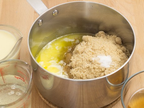 2. In a medium heavy-bottomed saucepan over medium heat, melt butter. Add Redpath® Golden Yellow Sugar, corn syrup, condensed milk, ¼ cup (60 ml) of the whisky, and salt. Gently stir to combine, making sure not to get the sugar on the sides of the pot. Bring mixture to a boil stirring often. Heat the mixture until a candy thermometer registers between 242℉(117℃) to 248℉(120℃). This will take approximately 15 to 20 minutes. Bringing the caramel to the higher temperature will yield a firmer caramel.