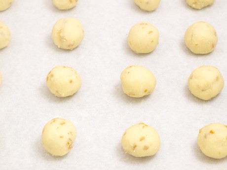 2. Once chilled, scoop 1 ¼ inch (3 cm) balls of ganache using a small cookie scoop (we made 25 g balls using a 1 ½ tablespoon scoop). Set aside to reach room temperature before dipping.