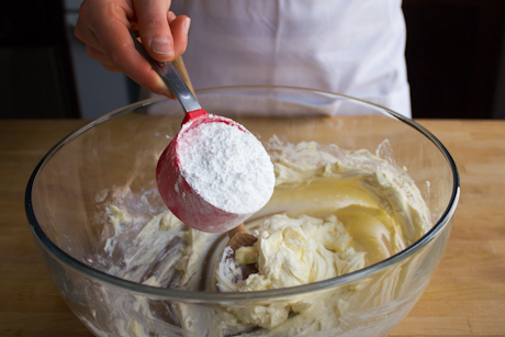 2. Add vanilla. Add 1/2 cup of icing sugar at a time until the full 1 1/2 cups of icing sugar has been added.