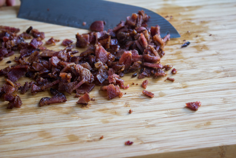 3.Stir in the buttermilk and vanilla extract. Fold in the crumbled bacon. Do not over mix.