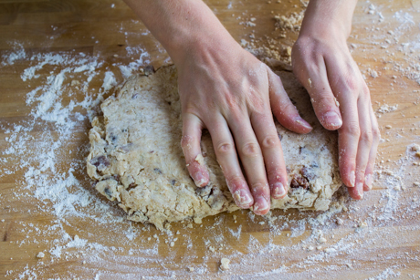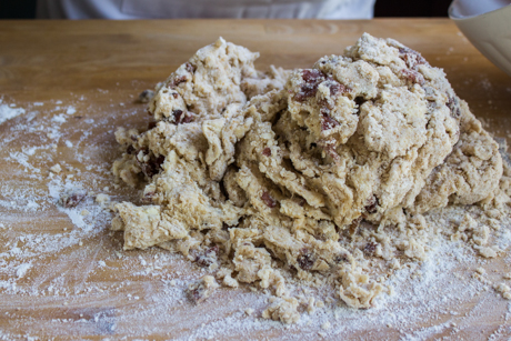 4. Turn the dough out onto a lightly floured surface. Knead gently just until the mixture comes together.