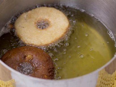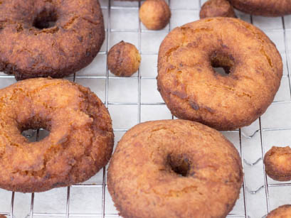 Maple Potato Donuts Maple Potato Donuts Potato Donuts, also known as Spudnuts, first came around in the mid-1900s. They’re traditionally made with mashed potatoes. On the inside, they’re super soft, and on the outside they have a bit of crunch. Categories: Donuts & Fritters Desserts Granulated Sugar Yields 8 large donuts Prep Time 30 minutes Cook Time 45 minutes Ingredients For the donut: 2 ½ cups (312.5 g) all-purpose flour ½ tsp (3 g) salt 3 tsp (15 g) baking powder 1 tsp (3 g) cinnamon ¼ cup (56 g) unsalted butter, melted 1 cup (200 g) Redpath® Granulated Sugar 2 large eggs ¾ cup (180 g) mashed potatoes (about 2 medium sized potatoes) ½ cup (250 ml) full fat milk 6 cups (1 ½ L ) vegetable oil, for frying (lard or shortening will work as well) Optional: maple sugar for topping For the glaze: pinch of salt 1 cup (120 g) Redpath® Icing Sugar 1 tbs (15 ml) cream or milk 3 tbs (45 ml) maple syrup Instructions For the donuts: Boil peeled potatoes, uncovered, for about 20 minutes, or until extremely soft. Add 1 tablespoon of salt to the water prior to boiling. Once boiled, drain and mash potatoes and reserve for later. In a medium sized bowl, sift together the all-purpose flour, salt, baking powder, and cinnamon. In a large bowl, mix together the butter and Redpath® Granulated Sugar with a hard whisk until light and fluffy. Add mashed potatoes and eggs to the sugar and butter mixture. In four additions, add the dry mixture to the wet mixture. Be sure to scrape the bowl and mix well. Dough will be soft, so use care when rolling out. Use lots of extra flour for dusting your surface. Handle the dough as little as possible so you don’t overwork it. Roll until the dough is ¾ of an inch thick. Once rolled, cut into rounds using a pastry cutter. Feel free to cook the donut holes, or incorporate them back into the dough. Heat fryer oil to 365℉ – 370℉ in a large heavy-bottomed pot, making sure it is large enough to accommodate bubbling oil. Fry donuts for about 2 minutes on each side or until nice and golden brown. Cool on wire rack. For the glaze: Combine all ingredients in a small bowl. If the glaze is too stiff, add 1 tablespoon of milk or cream at a time until it softens up. Dip cooled donuts in glaze and top with maple sugar, if desired and available. CHEF'S TIPS ● If you have leftover mashed potatoes feel free to use them in the recipe. ● You can find maple sugar at your local farmer’s market or specialty store. More Donuts & Fritters Recipes Old-Fashioned Apple Dumplings with Brown Sugar Apple Cider Syrup Churros with Dulce de Leche Peanut Butter and Jelly Donutsicles Creepy Cinnamon-Spiced Donuts Funnel Cakes Baked Cinnamon Sugar Donuts & Donut Holes Churro Ice Cream Sandwiches Beignets with Chocolate Cardamom Cream Sweet Chili Corn Fritters Yeasted Doughnuts