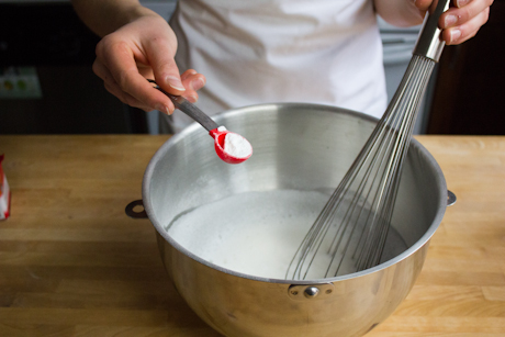 1. In a bowl whisk together egg whites and cream of tartar for 30 seconds. OR if using meringue powder, whisk together meringue powder and warm water together for 30 seconds, then whisk in the cream of tartar for another 30 seconds.