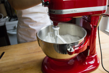 2. In the bowl of an electric mixer fitted with a paddle attachment, or using hand-held electric beaters, mix your icing sugar with the egg white or meringue powder mixture on low speed for roughly ten minutes.