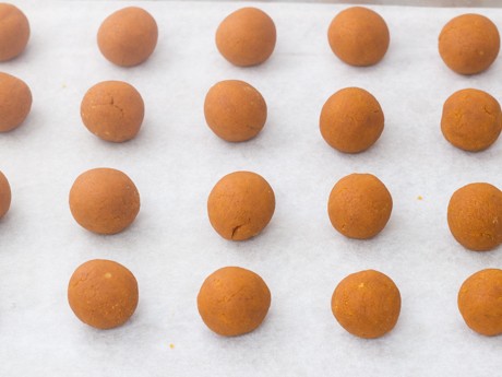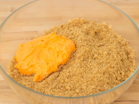 12. Add orange frosting to crumbled cake until smooth and fully incorporated. Roll into 40 balls, 1" (2 cm) in diameter.