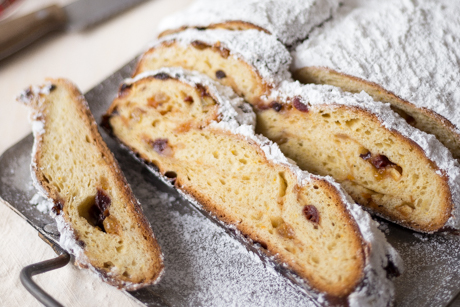 11. Let cool and dust with icing sugar before serving. Stollen will keep for about 3 days if stored at room temperature in a sealed bag.