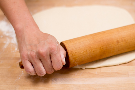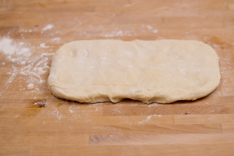 12. Working with 1 piece at a time, roll out on a lightly floured surface into a 12x6-inch rectangle.