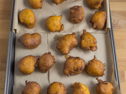 Picarones-Styled Doughnut Holes Picarones-Styled Doughnut Holes Inspired by the Peruvian version of doughnuts, our chefs created these delicious doughnut holes with sweet potato and pumpkin for a unique veggie treat. They’re great on their own, but for the complete Andean experience, you’ve just got to drizzle them with warm syrup! With flavours like cinnamon, anise, cloves, and citrus zest, Picarones are the perfect seasonal snack. Peru-ve yourself in the kitchen with this international recipe! Categories: Donuts & Fritters Yields 42 pieces Prep Time 1 hour 45 minutes Cook Time 30 minutes Ingredients 4 cups (960 ml) water 4 whole cloves 2 tsp (5 g) anise seed 1 (4 g) 3” cinnamon stick 3 cups (423 g) sweet potato, peeled and cubed 2 tbsp (25 g) Redpath® Granulated Sugar 1 tbsp (10 g) dry active yeast 2 cups (480 g) pure pumpkin puree 1 large egg, lightly beaten 1 tsp (3 g) orange zest, finely grated 1 tsp (3 g) lime zest, finely grated 3 cups (375 g) all-purpose flour 2 cups (240 g) bread flour 1/2 tsp (3 g) salt For the syrup 1 cup (240 ml) water 1/2 cup (120 ml) orange juice, preferably freshly squeezed 1 cup (217 g) Redpath® Demerara Style Sugar, firmly packed 1 cup (200 g) Redpath® Turbinado Sugar 5 strips lime zest 4 strips orange zest 5 whole cloves 2 (8 g) 3” cinnamon sticks 1 tsp (3 g) anise seeds oil for frying (preferably canola or peanut) Demerara Style Sugar Instructions Pour the water into a large pot. Place whole cloves, anise seeds, and cinnamon stick into a disposable tea bag or wrap in cheesecloth. Add the sachet d’epices to the pot. Bring to a boil. Add in the cubed sweet potato. Cover and reduce heat to medium. Simmer sweet potatoes until tender; about 15 to 20 minutes. Strain potatoes, reserving the water. Remove and discard spices. Allow potatoes to cool in the strainer to remove excess water. Once cooled, mash sweet potatoes until smooth and creamy. Place 1/2 cup (120 ml) of the reserved warm water (110°F to 120°F) into the bowl of a stand mixer. Sprinkle in the Redpath® Granulated Sugar and the active dry yeast. Stir to dissolve. Let stand for 5 minutes, or until foamy. Using the paddle attachment, add in the mashed sweet potatoes, pumpkin puree, lightly beaten egg, and the zests. Blend on medium-low speed until thoroughly mixed. Switch to the hook attachment. Whisk together the flours and salt. With the mixer on medium-low speed, gradually knead in the flour mixture about 1/2 cup at a time until batter has absorbed all of the flour and becomes a smooth yet sticky dough; about 5 to 7 minutes. Cover bowl with plastic wrap, and place in a warm, draft-free location until dough doubles in size; about 1 to 2 hours. For the syrup: In a medium pot, combine the water and orange juice. Add in the Redpath® Demerara Style Sugar, Redpath® Granulated Sugar, strips of orange and lime zest, cloves, cinnamon sticks, and anise seeds. Bring mixture to a boil. Lower heat to medium and simmer until sugar dissolves and the syrup thickens; about 10 minutes. Strain syrup. Discard zests and spices. To fry dough: In a large pot or dutch oven, pour at least 2 inches of oil and heat to 350°F. Line a baking sheet with paper towels. Have a small bowl of salted water near the pot of oil. With a small ice cream scoop, dip scoop into the water then scoop the dough. Release the dough near the surface of the hot oil to prevent splashing. Fry 4 or 5 pieces at a time, trying not to overcrowd the pot with dough as this will lower the temperature of the oil. Fry about 2 minutes per side or until deep golden in colour. Use a slotted spoon to remove the picarones from the hot oil; transfer hot picarones onto the paper towel-lined baking sheet. Serve picarones drizzled generously with the warm syrup. CHEF'S TIPS If desired, use the same amount of mashed/pureed butternut or acorn squash in place of the pumpkin puree. Sweet potatoes can be mashed by hand using a potato masher, fork or even a handheld mixer. It can also be easily processed in a food processor. For the syrup, lime juice can be used instead of the orange juice or a combination of both can be used. If a small trigger-style ice cream scoop is unavailable, use 2 round tablespoons. Dip both spoons into the salted water, then use one to scoop the dough. Bringing the filled spoon close to the surface of the hot oil, use the empty spoon to gently push the dough off the spoon and into the hot oil. More Donuts & Fritters Recipes Old-Fashioned Apple Dumplings with Brown Sugar Apple Cider Syrup Churros with Dulce de Leche Peanut Butter and Jelly Donutsicles Creepy Cinnamon-Spiced Donuts Funnel Cakes Baked Cinnamon Sugar Donuts & Donut Holes Churro Ice Cream Sandwiches Beignets with Chocolate Cardamom Cream Sweet Chili Corn Fritters Yeasted Doughnuts