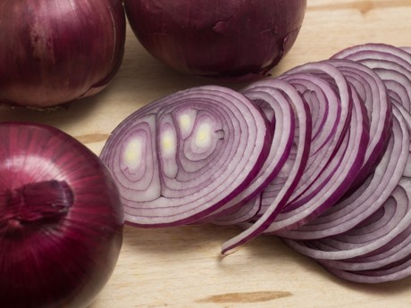 3. Peel onions. With a sharp chef's knife, cut onions into ⅛ (3 mm) to ¼ (6 mm) of an inch thick rings. Place into a bowl, until ready to use.