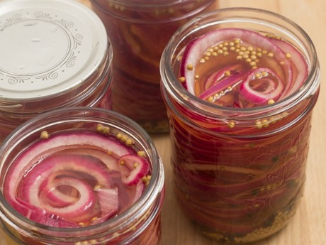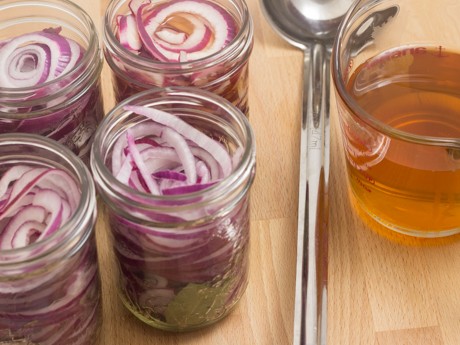 9. After the time is up, quickly and carefully take jars out of the hot water. Place jars onto a clean kitchen towel and allow to cool and rest for 24 hours. Refrain from moving the jars. Keep processed jars that are sealed properly in a cool, dark place. The pickled onions should keep for up to a year. If a jar has not sealed properly, keep in the fridge for up to 2 weeks.