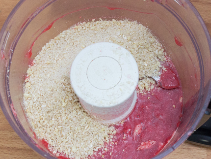 Place the raspberries, lime juice, coconut oil, lime zest, and vanilla extract into the bowl of the food processor, process until raspberries are pureed and ingredients are fully combined. Pour the dry ingredients over the raspberry mixture, pulse several times until the dry ingredients are incorporated into the wet and a ball begins to form.
