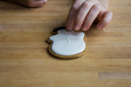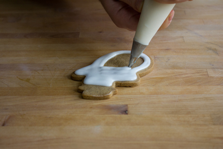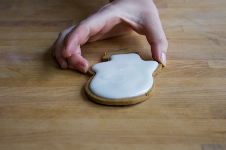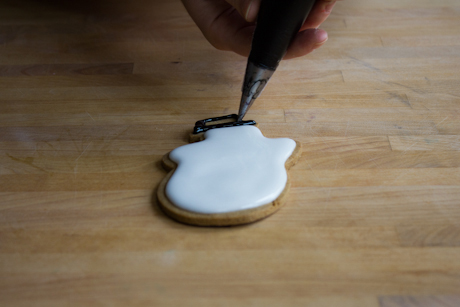 Royal Icing Tutorial: Flooding Royal Icing Tutorial: Flooding Decorating with Royal Icing is an easy way to jazz up a plain sugar or gingerbread cookie. This tutorial shows you how to flood a cookie. Categories: Frostings & Ganaches Cookies, Brownies & Bars Ingredients What you need: 1 batch of Royal Icing icing colour gels or food colouring #4 piping tips Piping bags Icing Sugar Instructions Royal Icing Decorating Techniques: Flooding Directions: 1. Decide which colours you want to use for decorating, and divide the royal icing into as many bowls. Mix in your food colouring until you've achieved the colours you like. 2. Fill your piping bags with the coloured royal icing. 3. To flood your cookie, first make an outline of the area you want filled in. Firmly squeeze the top of the piping bag and use your other hand to direct the tip, making a starting point by pressing down then lifting the tip up, pulling the icing in the direction you want it to go. 4. Once you've finishing outlining the area you want to fill, begin filling in the area with icing. 5. When you've filled the entire surface with icing and only a few tiny gaps remain, set your piping bag aside. Hold the cookie gently on either side and shake it until no gaps remain and the icing is smooth. Tap the cookie a few times on the table to ensure the surface is smooth. Repeat all the steps to fill in any other areas that need to be coloured. 6. If adding any decorations to your cookies, such as the buttons, eyes, and nose on this snowman cookie, do so quickly, while the icing is still wet (it will begin to dry almost immediately). For the snowman's eyes, we simply used a toothpick dipped in black royal icing to add them on. 7. Set aside your decorated cookie and allow it to dry for several hours or overnight. For more royal icing tutorials, check out these links:Outlining FeatheringMarbling
