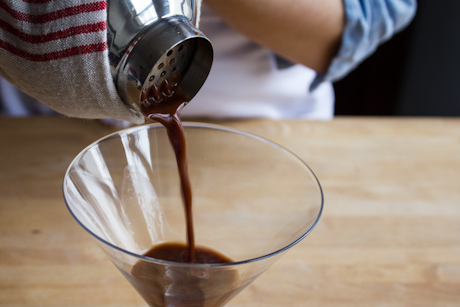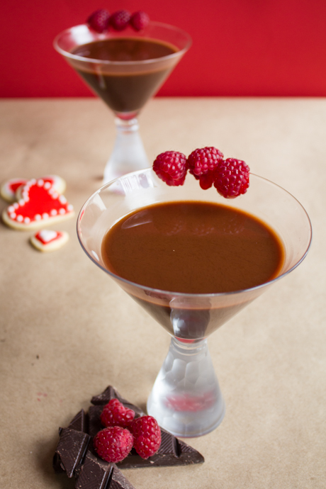 Strain into martini glasses and garnish with raspberries, if desired. Serve immediately.
