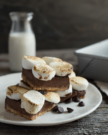 5. Lower oven rack to the middle position, and set oven to the lowest broil setting. Place pie on the rack and lightly toast the marshmallows. We recommend pulling them out of the oven the second you see them beginning to turn slightly golden. You can also use a kitchen torch to toast the marshmallows instead, should you have one handy.