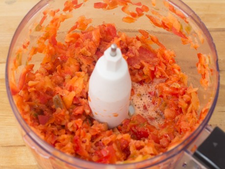 1. Place the peppers in a food processor and pulse until chopped extremely fine.