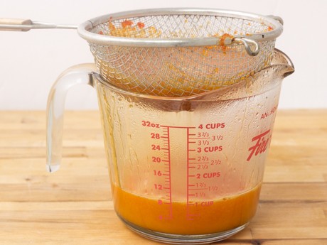 4. While jelly is still hot, strain and ladle it into hot jars, leaving a quarter inch headspace. Cool completely until set.
