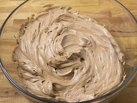 Whisk 1 cup (132 grams) of buttercream into the chocolate, in order to lighten it. Fold into the plain buttercream.